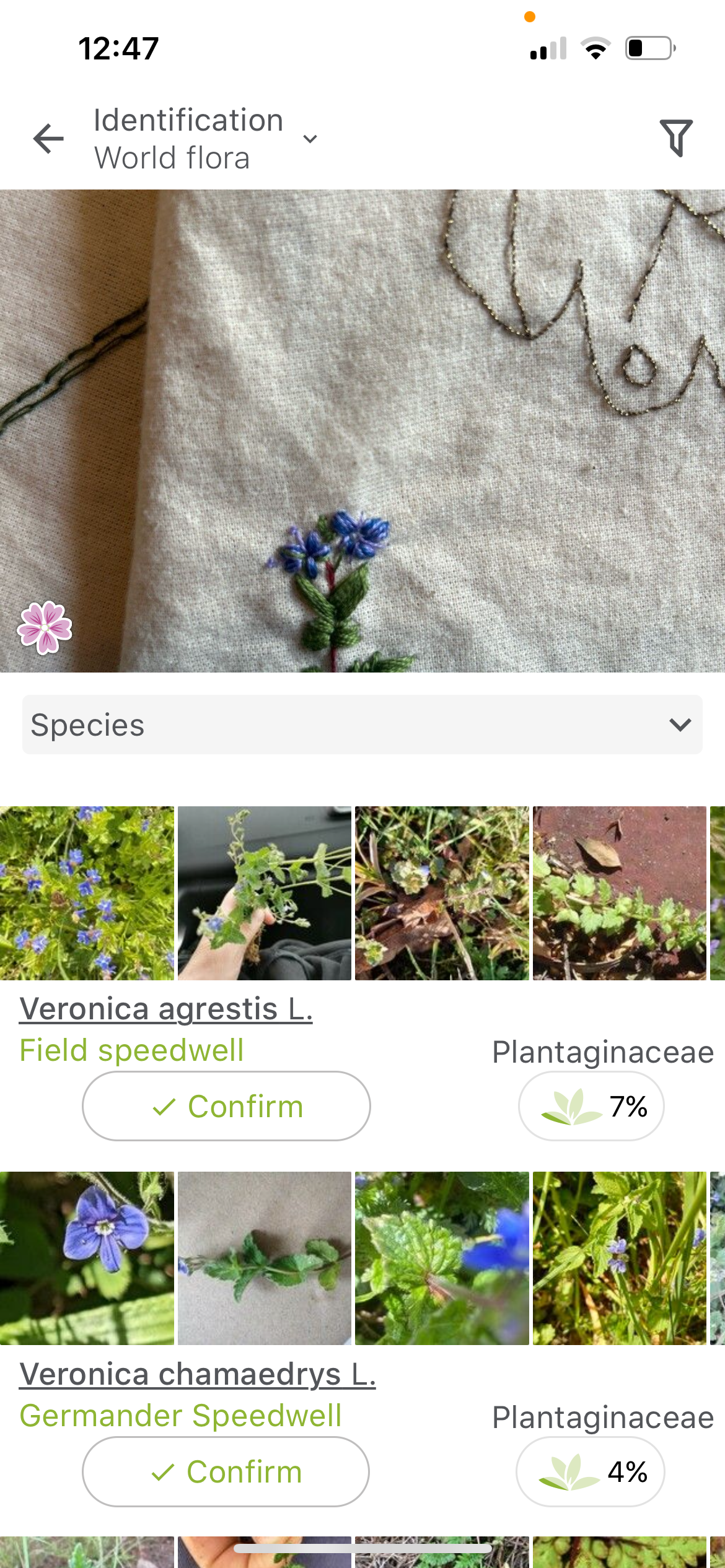 I’m finding it funny that many of the sewn flowers can be identified on the plant app on my phone.